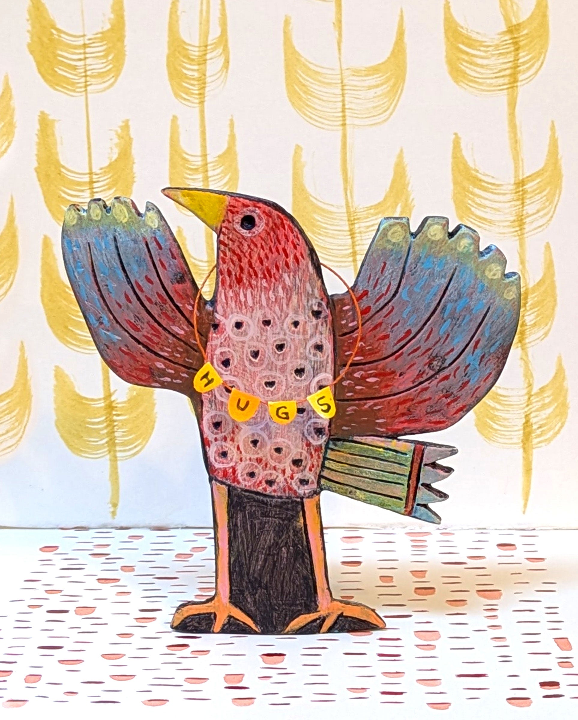 Ready to perch on your shelf and with wings wide open for lots of hugs. - Judy