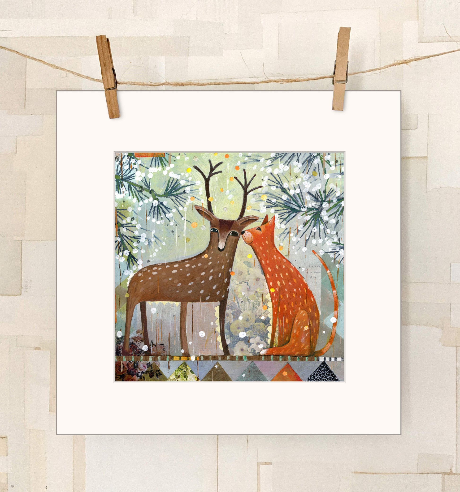 I’m happy to offer 8"x 8” prints created from my original mixed media art. Prints come with a white matt which adds 2” on all sides, making the outer measurement 12"x 12" for easy standard framing.
