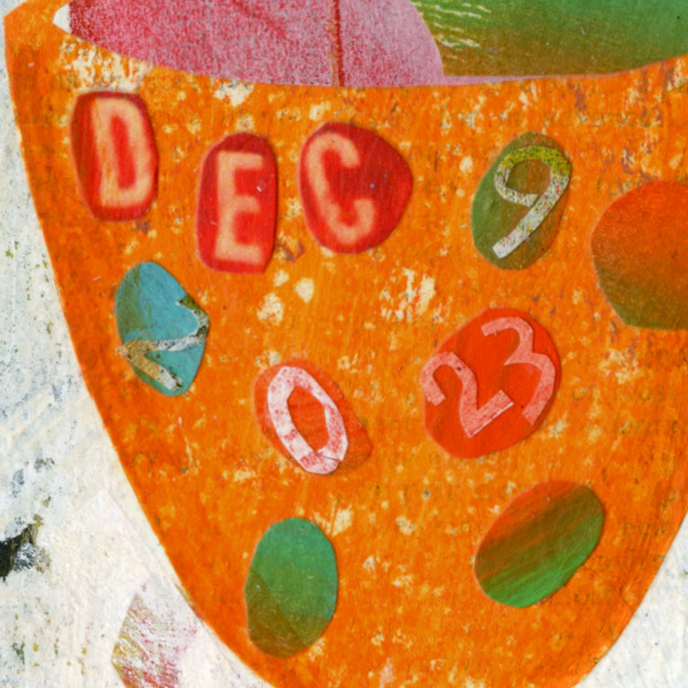As I type this, I'm sipping tea from my favorite mug. It's perfect for my hand, holds a generous portion and reminds me of the person who gave it to me. It's also covered with paint splashes and fits right in on my studio table. I have to be careful not to put a paint brush in it! These "Nine Mug Shots" are colorful, quirky and give me a smile on this, the ninth day of December. - Judy
